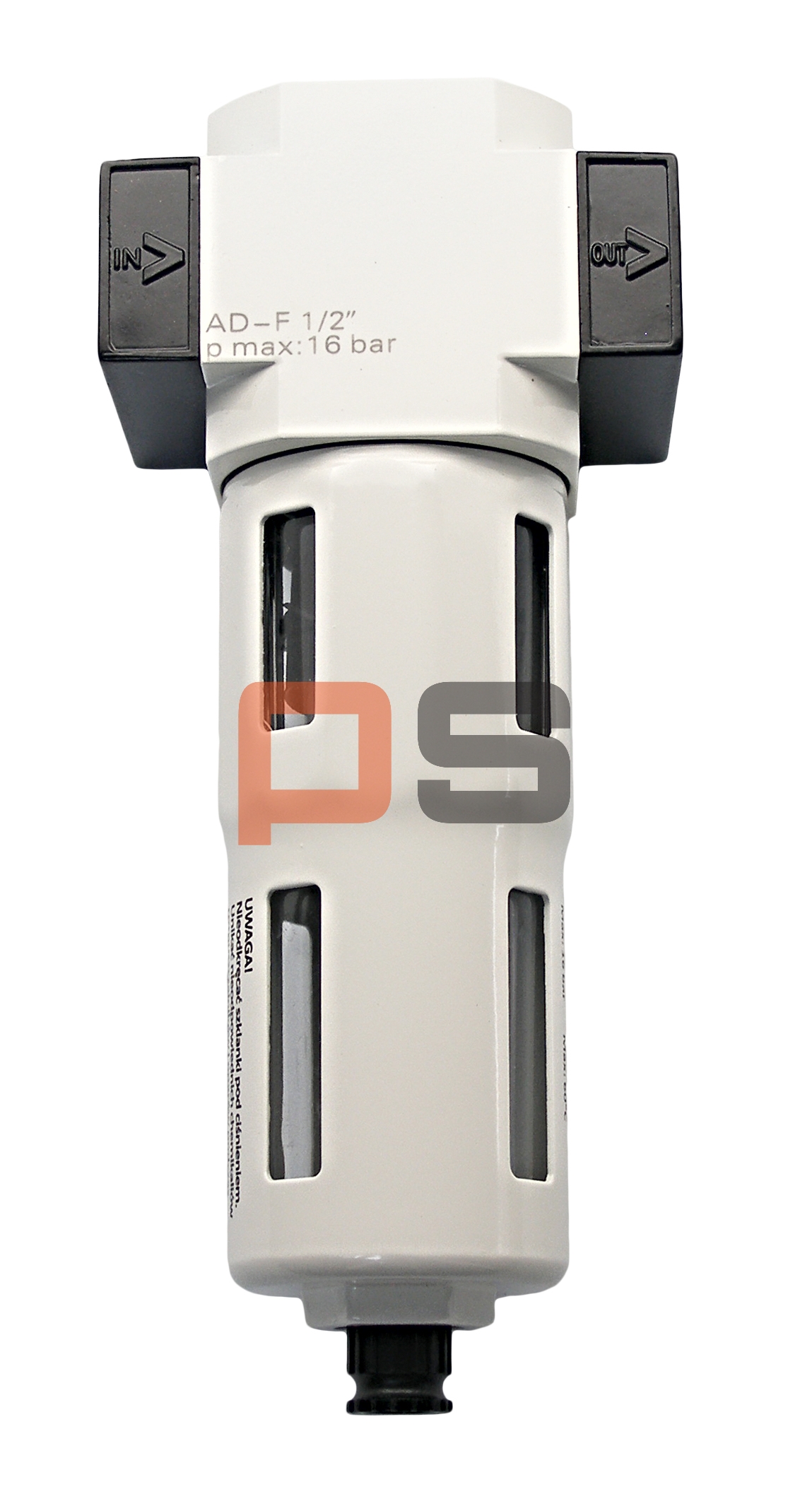 Filtrują sprężone powietrze ze stałych i płynnych cząsteczek i tym samym w dużym stopniu chronią i znacznie przedłużają żywotność pneumatycznych maszyn i urządzeń. Oba przyłącza to gwinty wewnętrzne 1/4 lub 1/2 cala. Zespoły mogą być zamontowane tylko w pozycji pionowej, w obie strony zgodnie z kierunkiem przepływu powietrza. Filtry Adler Industrial wyposażone są w dokładne wkłady filtrujące sprężone powietrze z cząsteczek większych niż 5 mikronów (5µ).