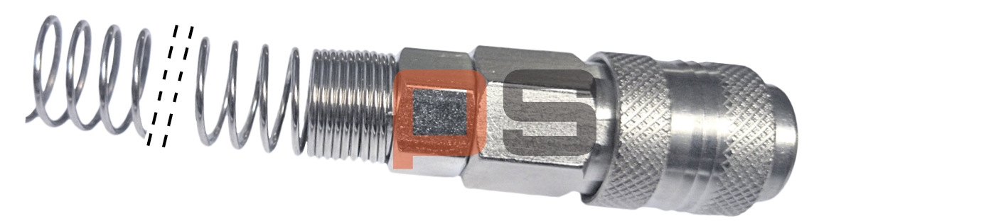 Ten typ szybkozłącza służy do okuwania przewodów z tworzywa. Okucie przewodu szybkozłączem zaciskowym, zapewnia bardzo bezpieczne i trwałe połączenie a dodatkowe zabezpieczenie sprężyną zapobiega zaginaniu przewodu. Połączenie tego typu jest znacznie pewniejsze niż stosowanie szybkozłączy z króćcami choinkowymi i opaskami zaciskowymi.