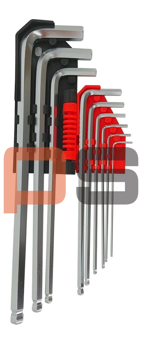 Wysokiej jakości zestaw uniwersalnych kluczy imbusowych HEX typu "L" z kulką w rozmiarze od 1,5 do 10,0mm, wykonanych ze stali CrV 6150, zapewniającej długoletnią wytrzymałość.