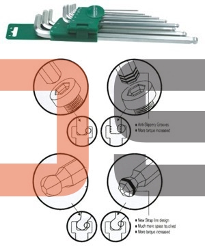 Zawartość 9 kluczy o rozmiarach: 1,5; 2; 2,5; 3; 4; 5; 6; 8; 10mm