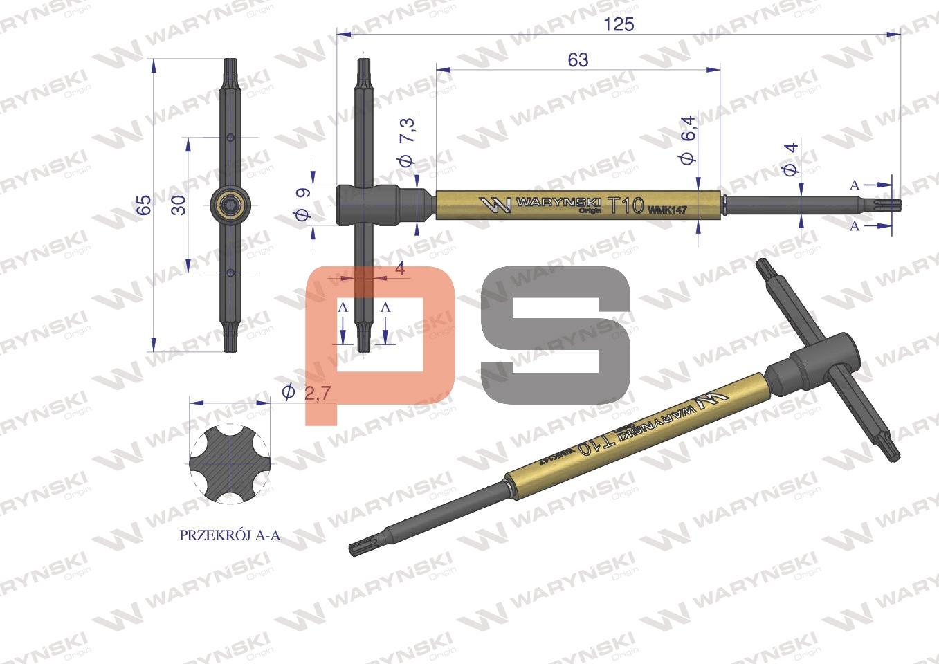 Waryński, klucz T ze spinnerem TORX T50, WMK155