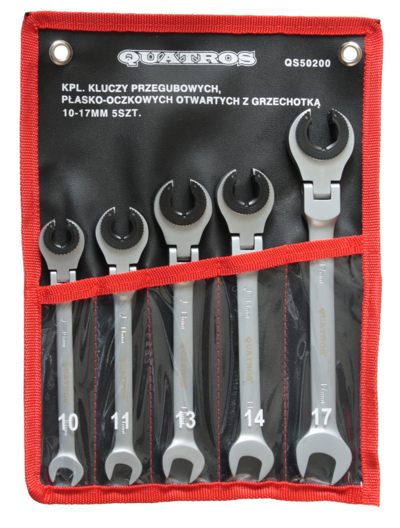 Quatros komplet kluczy przegubowych płasko - oczkowych otwartych z grzech. 10-17mm 5szt. QS50200