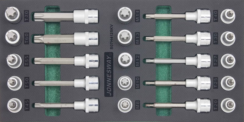 Jonnesway kpl. 25szt. kluczy TORX i RIBE z nasadką 1/2" we wkładce EVA S07H4125KV