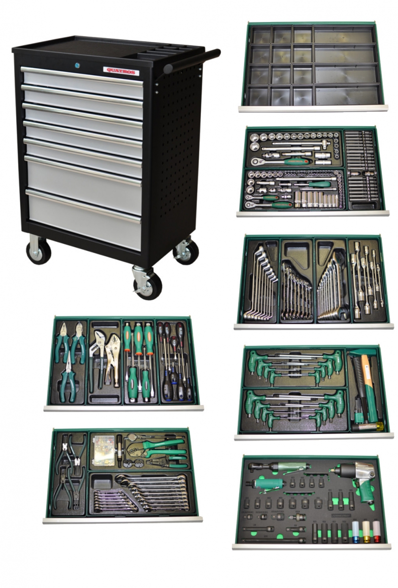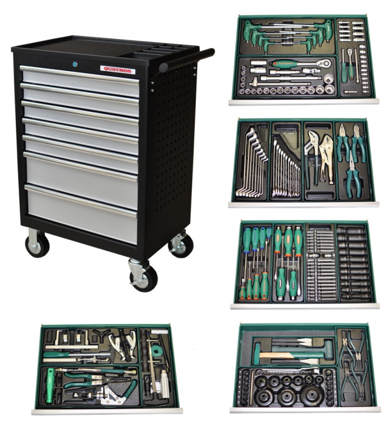 Wózek narzędziowy 7-szufladowy Quatros z kompletem 379 szt. narzędzi Jonnesway Q7-379