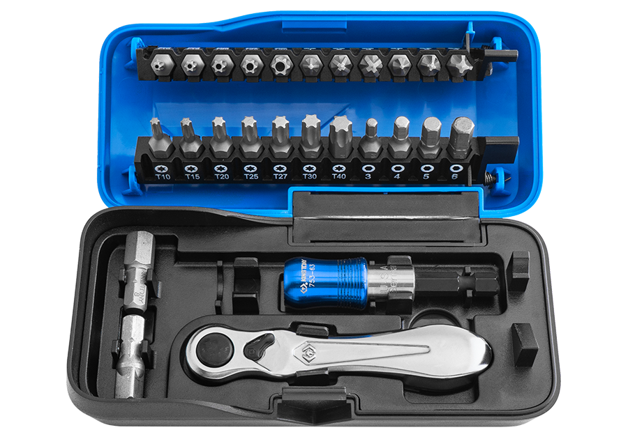 King Tony, zestaw narzędzi 1/4" 51cz. nasadki krótkie 6-kąt. 4-14mm, bity 1/4" z grzechotką i akcesoriami, kaseta, 2551MR